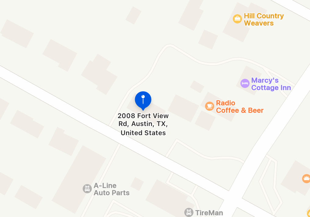 I work at 444 Tattoo in historic South Austin! We share a parking lot with Radio Coffee. Our address is: